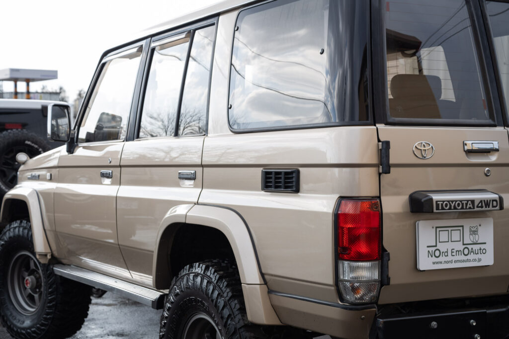 シャンパンゴールドのカッコいい78プラド入庫しました 3インチアップ/オールドマンエミュー足回り/後期最終年式/シートカバー/